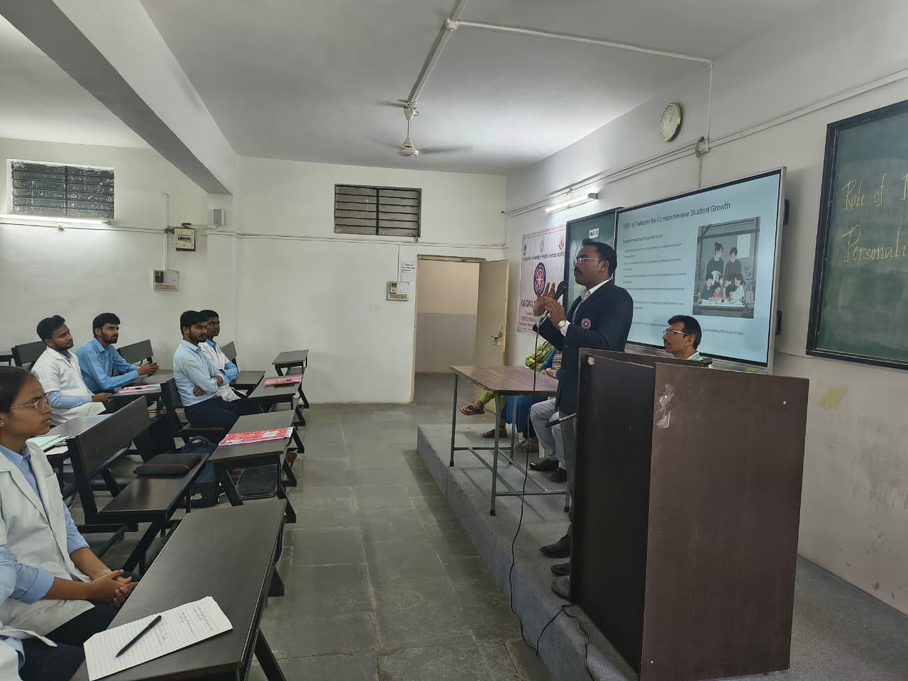 Our NSS Team organized a Guest Lecture for 2nd year students. The session was delivered by Prof. Sudarshan Khillare, who shared his valuable insights on the significance of the National Service Scheme and its role in shaping socially responsible citizens. The lecture was highly interactive, with students gaining inspiration and motivation to contribute meaningfully to society through NSS initiatives. The session concluded with a vote of thanks, expressing gratitude to Prof. Sudarshan Khillare for his thought-provoking address.